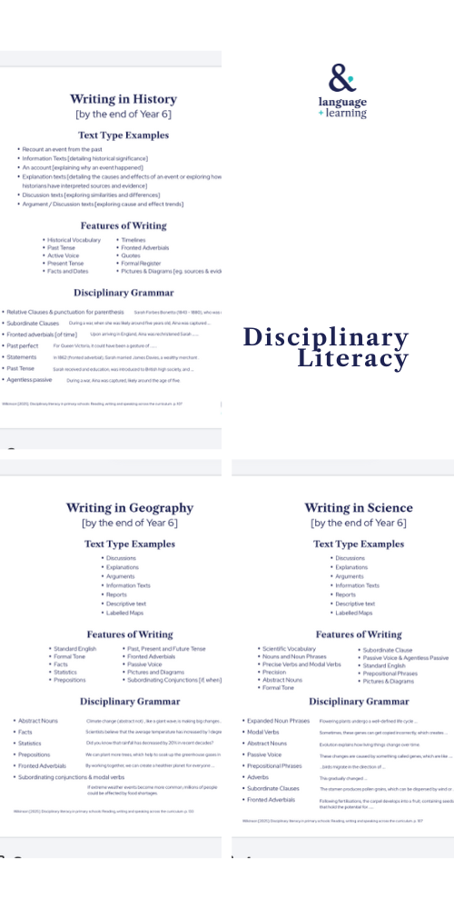 Disciplinary Literacy: ‘Each field of study has its own special way of using text to create, communicate, and evaluate knowledge .... it is vital that students become acquainted with these unique or specialised ways of reading and writing.’ [Shanahan, 2019]